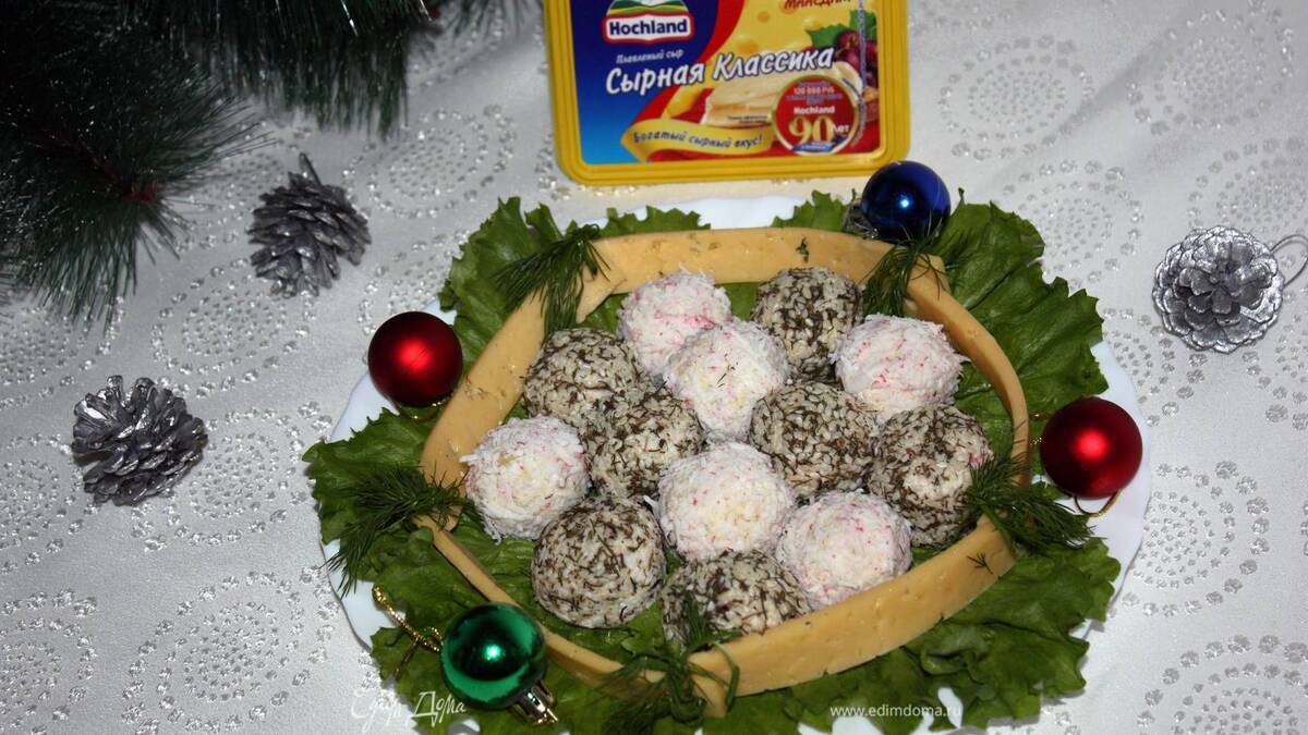 Стружку крабовых палочек добавить к яйцам с чесноком. Хорошо все перемешать и добавить плавленый сыр Hochland. Еще раз тщательно перемешайте и из полученной массы формируйте шарики. - Шаг 4