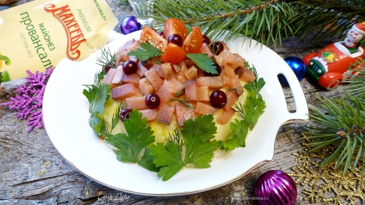 Вкусный и легкий слоеный салат с малосольной красной рыбой, заправленный майонезом ТМ «МахеевЪ» с васаби. Эдакая вариация на тему японской кухни ;)