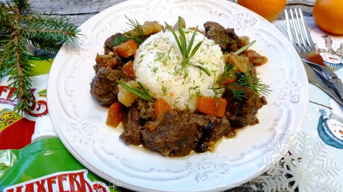 Лосятина, томленная с овощами