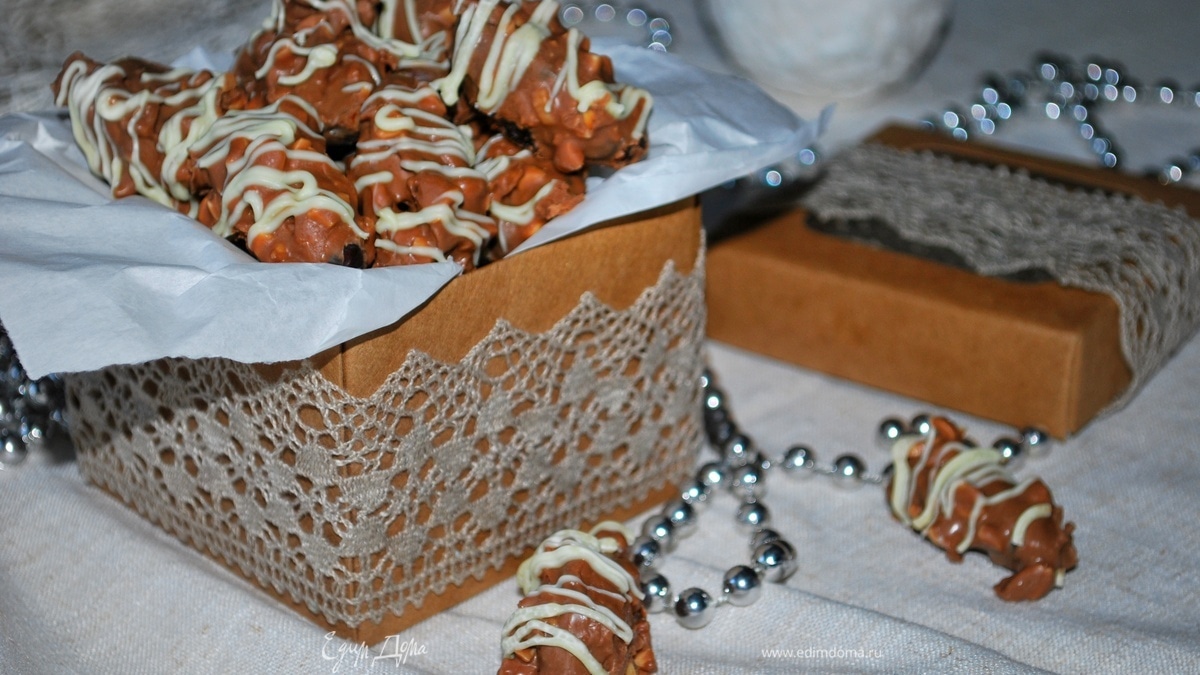Украсить финики белым шоколадом.