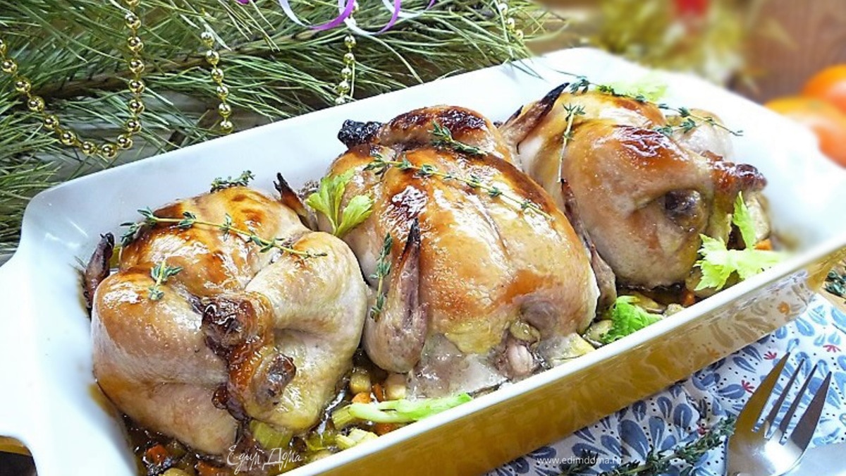 Нежные, ароматные цыплята под аппетитной хрустящей корочкой станут украшением праздничного стола, овощи прекрасно гармонируют в этом блюде, а тимьян и специи придают необыкновенный аромат.