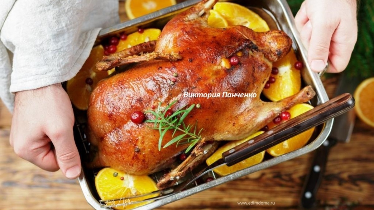Утка, запеченная с апельсинами и клюквой
