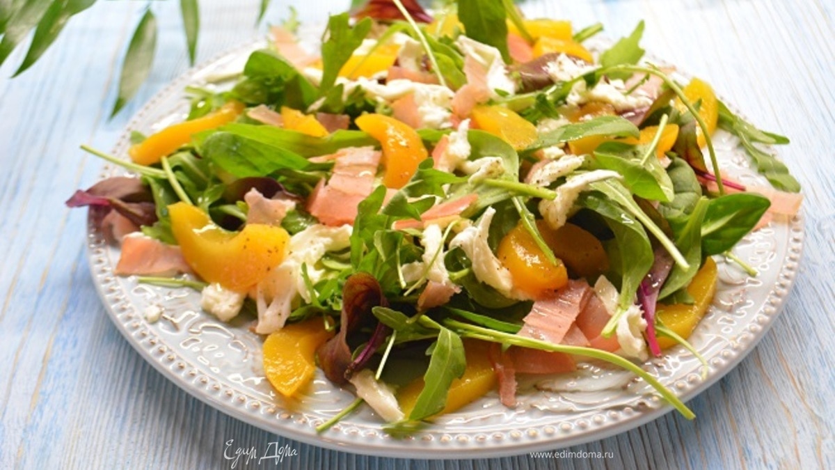 Салат с прошутто, моцареллой и персиками