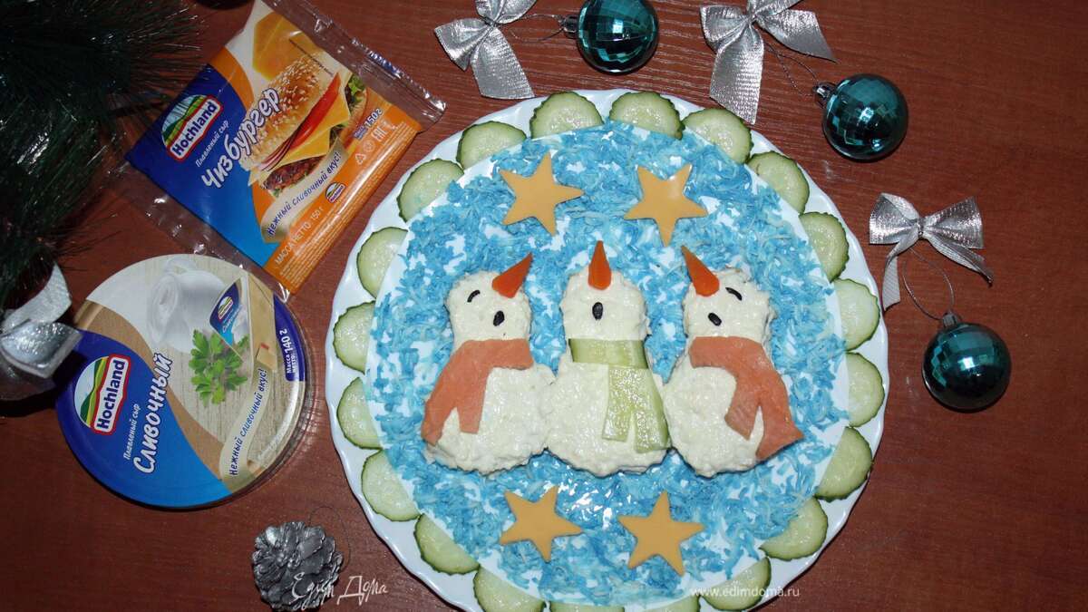 Бутерброды «Поющие снеговики в шарфиках» готовы.