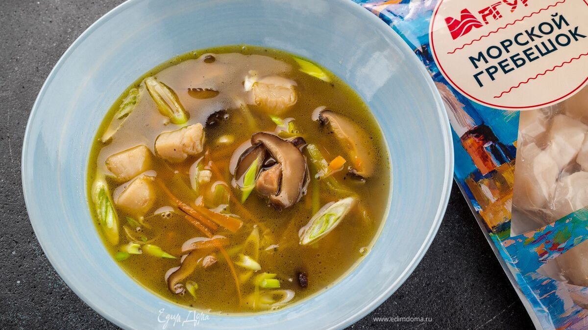 Морские гребешки ТМ «Магуро» разморозьте и обжарьте на оливковом масле с двух сторон по 30 секунд. Добавьте в суп. - Шаг 8