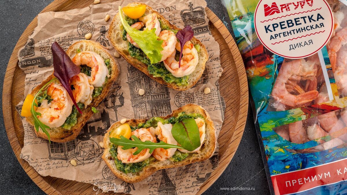 Тосты с креветками и песто
