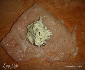 Филе слегка посолить, на середину положить чайную ложку сливочного масла.
