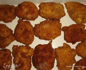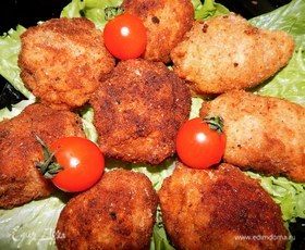 В казанке или в маленькой кастрюле разогреть подсолнечное масло. Жарить котлеты с двух сторон до золотистого цвета. Выкладывать котлеты на бумажные полотенца, чтобы убрать лишнее масло.