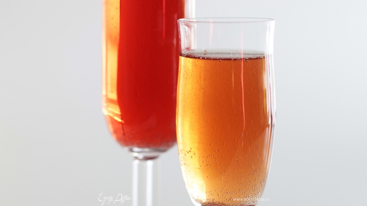 - Шаг 11. Влить в большой графин мартини. 2. Добавить клюквенный сироп и шампанское. 3. Разлить коктейль по бокалам и украсить веточками смородины.