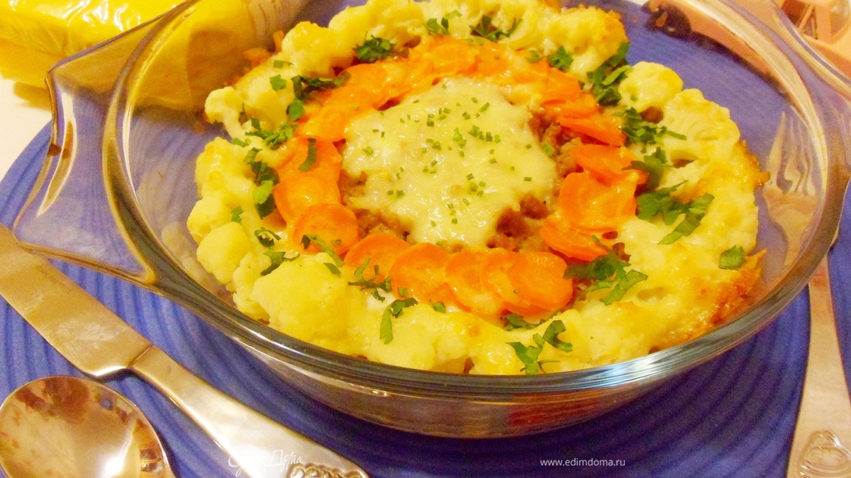 На него по кругу (солнышком) выложить цветную капусту и нарезанную кружками отварную морковь. - Шаг 9