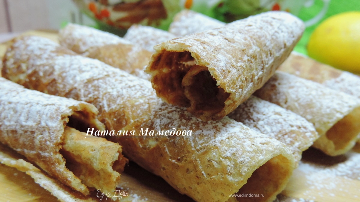 Вафлю незамедлительно сворачиваем трубочкой. - Шаг 6