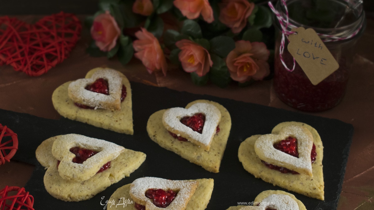 Как-то на глаза мне попался рецепт австрийского печенья, и я подумала, что он идеально подойдет к 14 февраля, в форме сердечек с красненьким джемом. И хотя у нас в семье как-то не принято отмечать этот праздник, это не повод не испечь вкусное печенье. Хрустящее тесто из орехов и сладкая прослойка из джема, ммм...