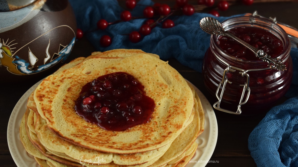Блинчики из дрожжевого теста с кукурузной мукой одним своим цветом поднимают настроение. Подавайте их с джемом или вареньем.