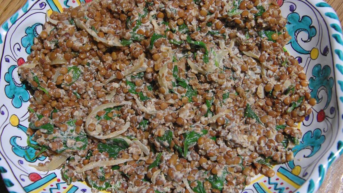 Ароматная чечевица со шпинатом и йогуртом