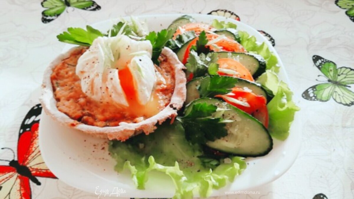 Ржаные тарталетки с паштетом из тунца и яйцом пашот