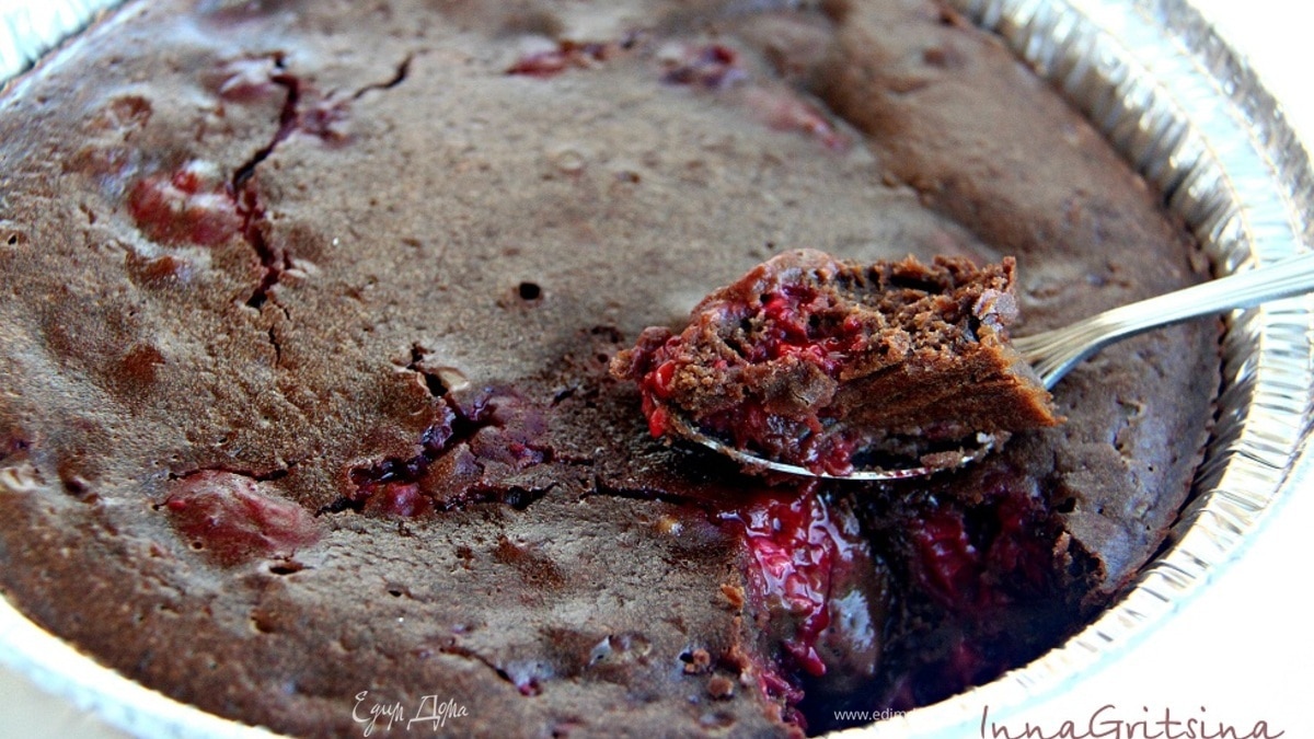 Шоколадный брауни с малиной