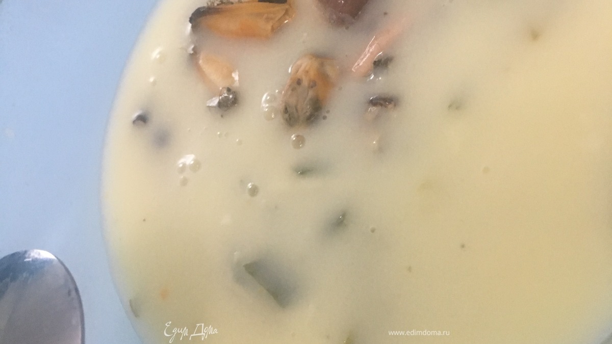 Нежнейший суп с белорыбицей и мидиями. Суп готовится