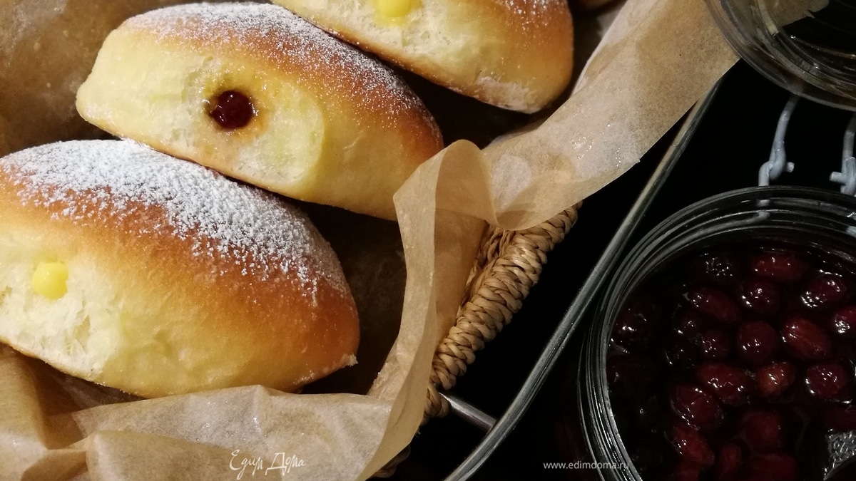 Я отступив от традиционной технологии испекла берлинский пончик (он же крапфен, он же булочка с начинкой) в духовке. Угощайтесь!
