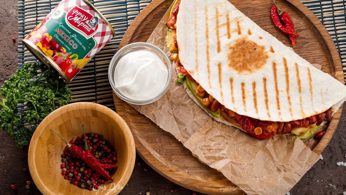 Овощная кесадилья с красной фасолью