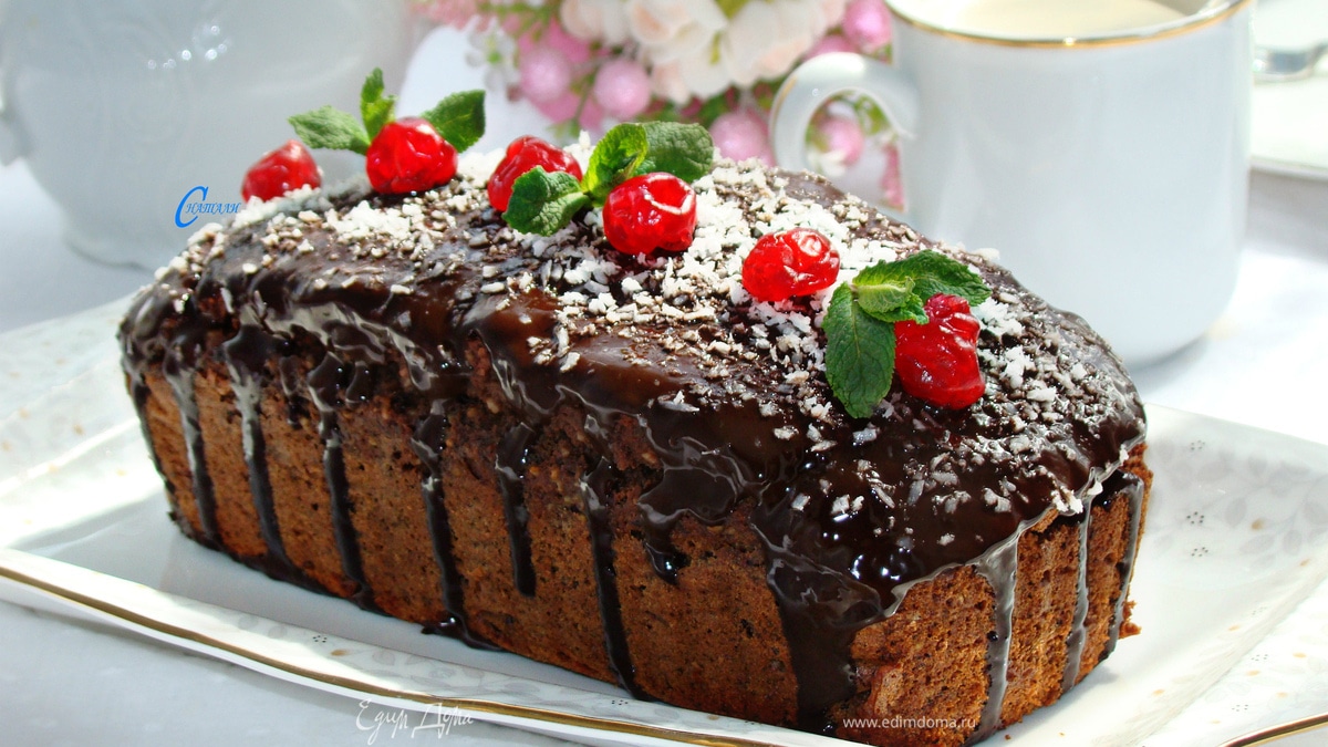 Готовый кекс полить растопленным горьким шоколадом и украсить вишней, или по своему вкусу. - Шаг 7