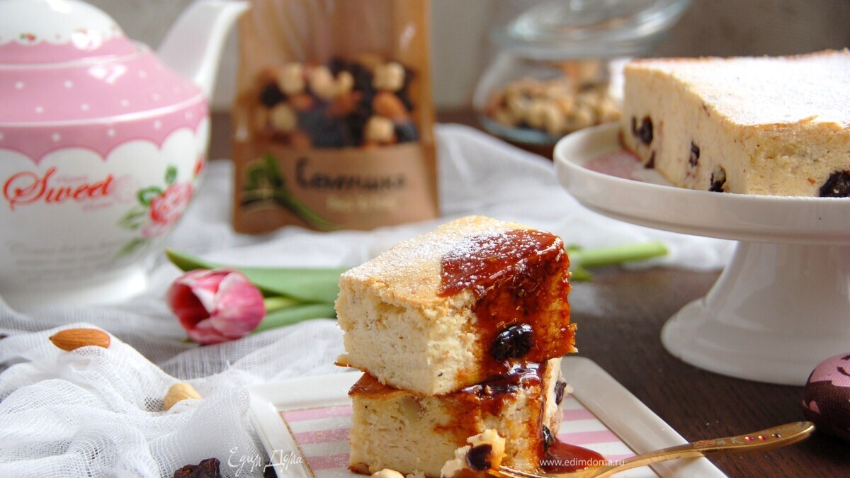 Воздушная запеканка с изюмом и орешками