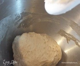 Вначале замесим тесто. Просейте муку, добавьте остальные ингредиенты и замесите до пластичного однородного состояния. Уберите в пленку пока готовите начинку.