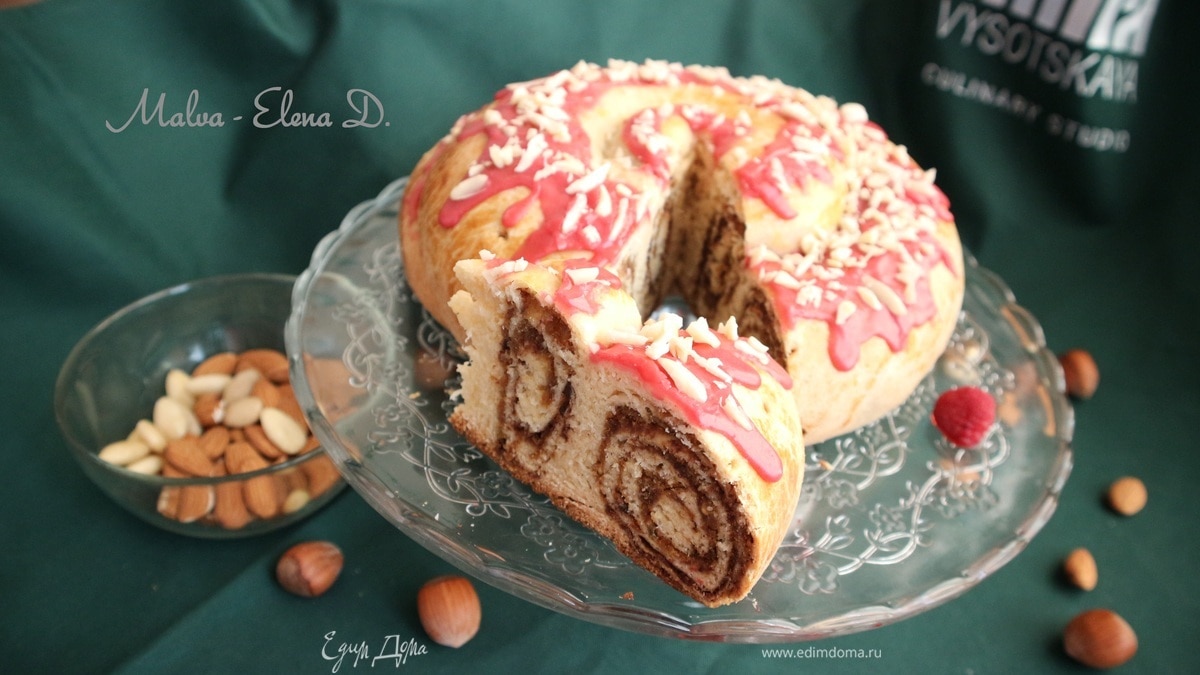 Каждая хозяйка украшает пирог по своему усмотрению, часто улитку из теста