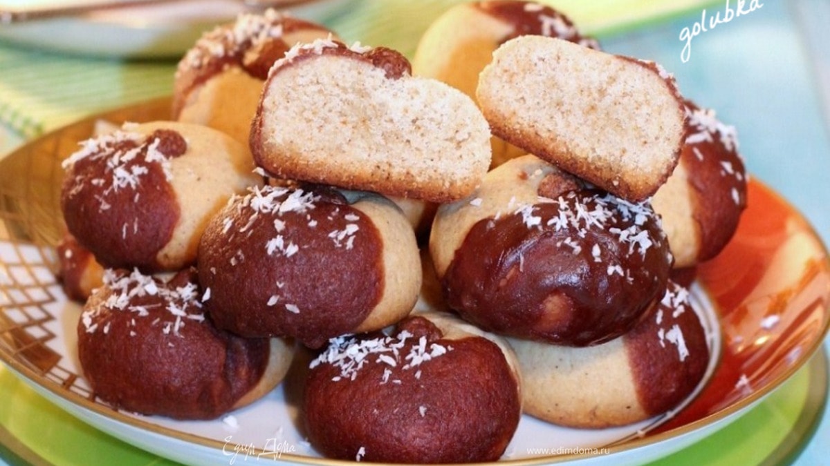 Украсьте шоколадную часть печенья кокосовой стружкой. - Шаг 12