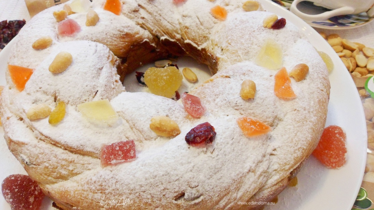 Плетеный калач с изюмом, орехами, вяленой клюквой и фруктовым мармеладом — праздничная эффектная выпечка, довольно простая в своем исполнении. Если вы хотите произвести впечатление на своих гостей и прослыть хорошей домохозяйкой, плетите калач, не прогадаете!