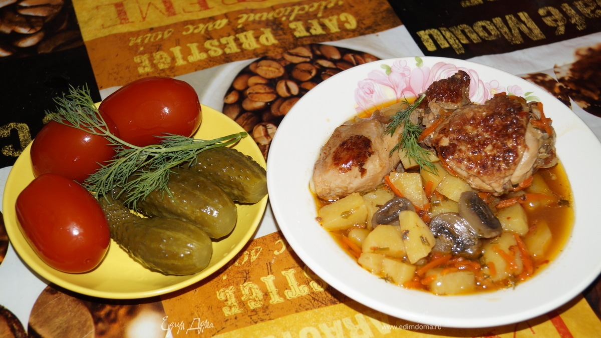 И вот жаркое уже на тарелке. Очень было вкусно. Приятного и вам аппетита!