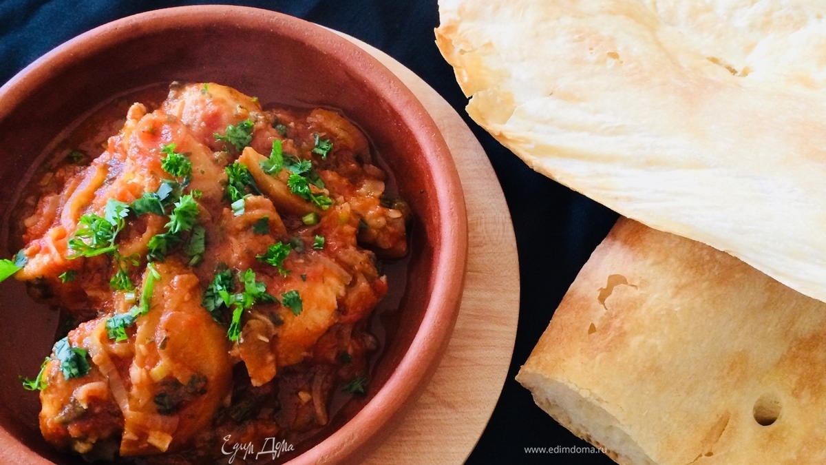 Цыпленок с помидорами и айвой