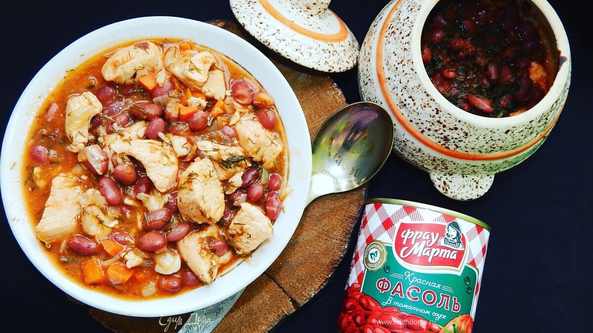 Горшочки с куриным филе и красной фасолью