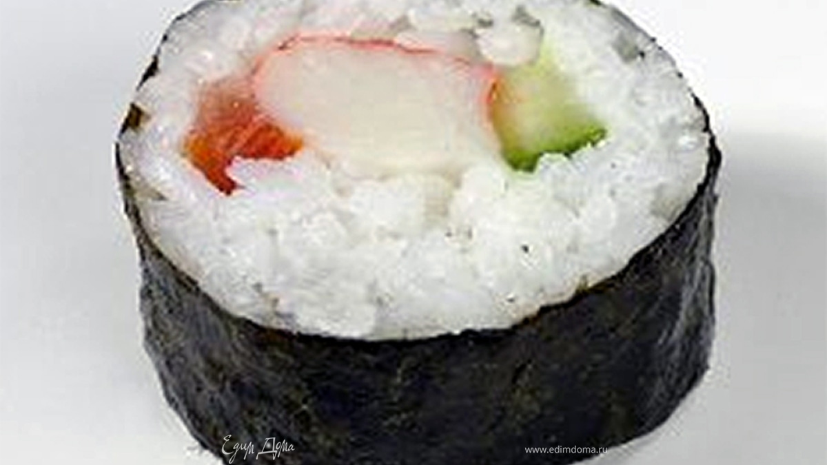 - Шаг 1Водоросли разложить на специальном коврике из соломы, для приготовления роллов. Распределить рис тонким слоем, но при этом, чтобы он покрывал поверхность листа Нори. По центру тонкой линией смазать Васаби. Положить нарезанные полосками огурец и крабовое мясо. Провести полоску майонеза и начинать скручивать колбаску. Затем порезать. Подавать с соевым соусом и Васаби.