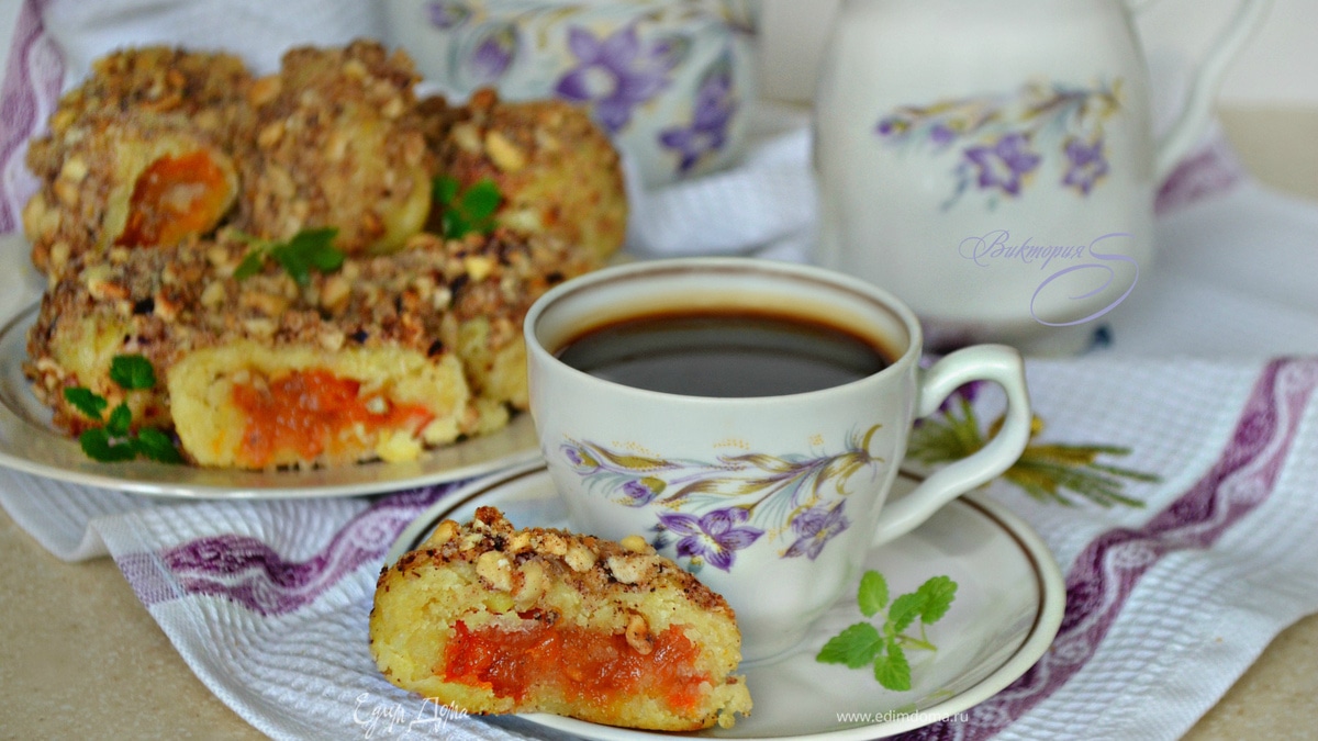 Картофельные кнедли с курагой и ореховой посыпкой