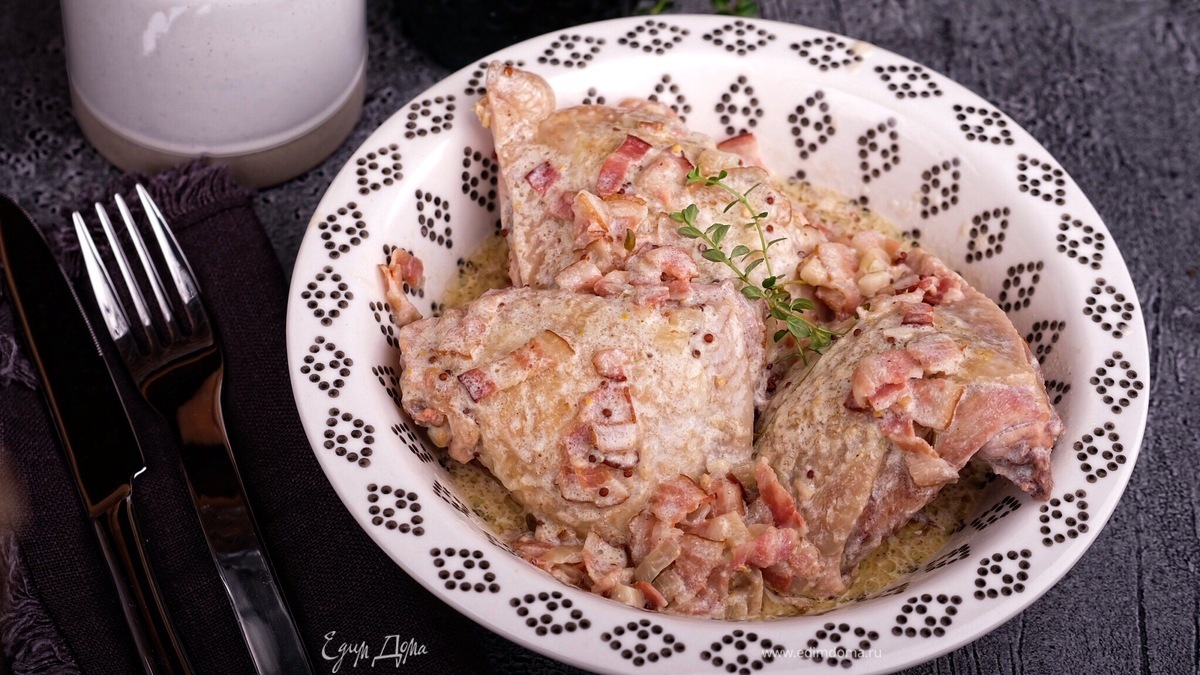 Куриные бедра в горчичном соусе с беконом