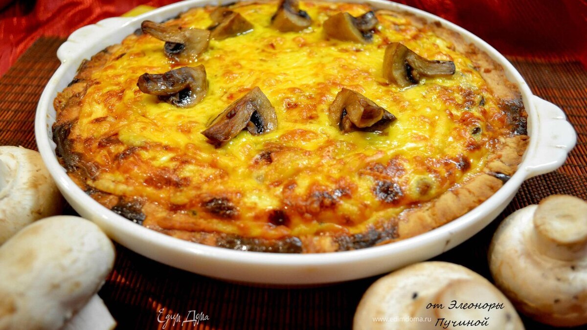 Готовый киш посыпала еще сыром сверху, украсила сверху свежими шампиньонами и отправила в духовку под гриль подрумяниться. - Шаг 7