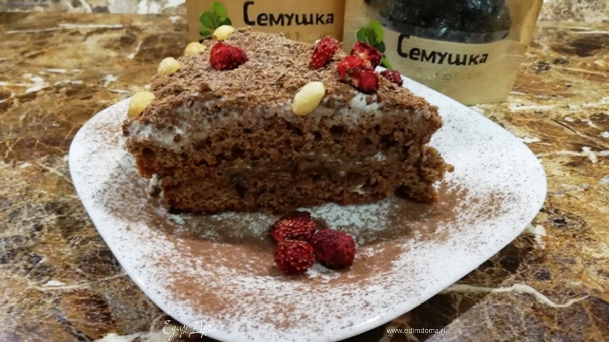 Шоколадный торт с кремом из ароматного чернослива ТМ «Семушка», арахисовой пасты, рикотты и ликера. Нежный, он сводит с ума своим ароматом и вкусом!