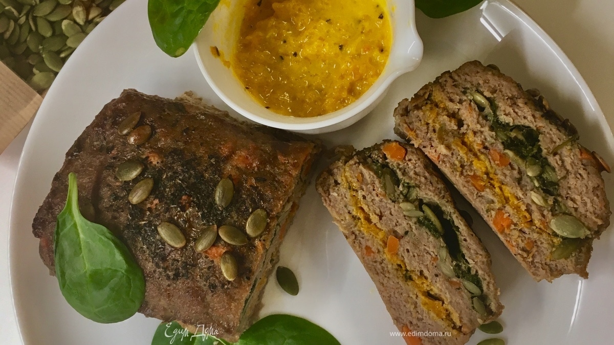 Мясной хлеб со шпинатом, болгарским перцем и соусом