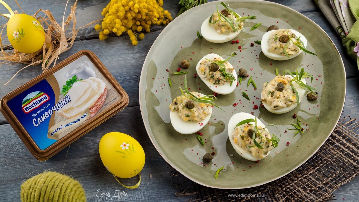 Яйца, фаршированные нежным кремом с зеленью