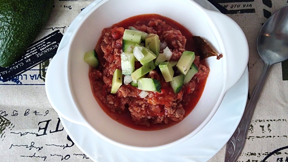 Чили кон карне (chili con carne) с сальсой из авокадо