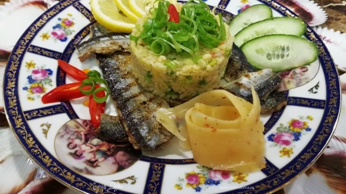 Сайра с ананасовым булгуром