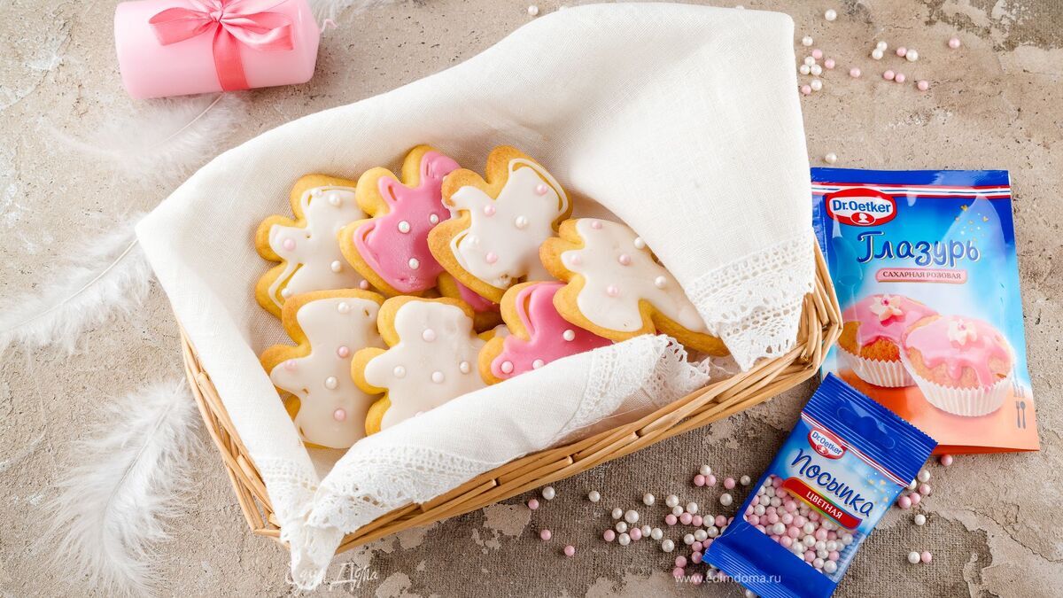 Достаньте печенье из духовки и остудите. Приготовьте сахарную белую и розовую глазурь Dr. Oetker. Опустите пакетики с глазурью в горячую воду на 3–5 минут. Выложите их на полотенце и слегка надавите на них. чтобы сделать текстуру глазури более однородной. - Шаг 9