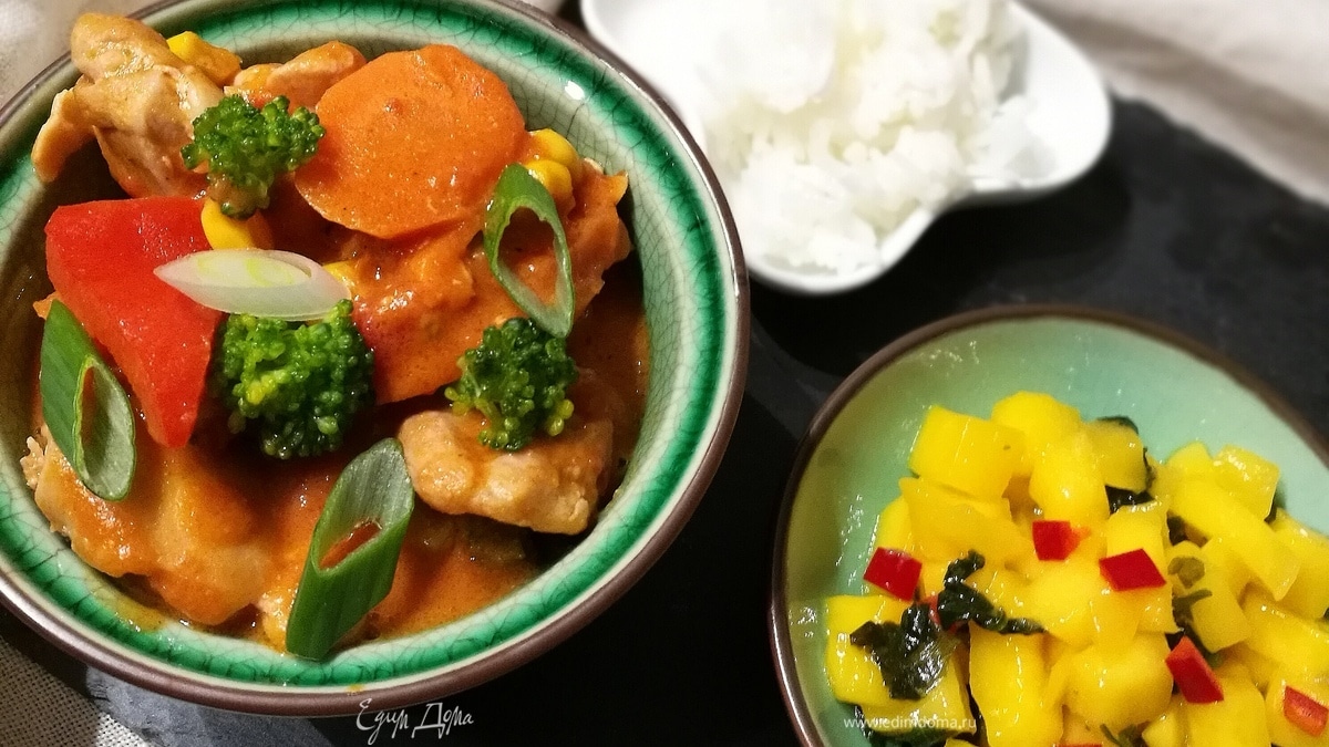 Подавать карри с ароматным рассыпчатым рисом, посыпав зеленым луком. - Шаг 12