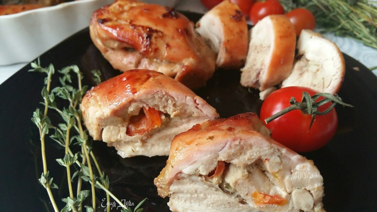 Сочненький помидорчик в центре, не менее сочная курочка со вкусом базиликового песто. Ммм... - Шаг 12
