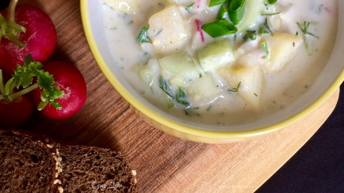 В Тбилиси уже давно весна, появились свежие огурчики, зелень, и так захотелось такого весеннего и легкого обеда. Решила сделать окрошку. Раньше я всегда делала окрошку на мацони, но как-то у меня не было мацони, но был айран, пришлось делать на айране, но это оказалось так вкусно, что теперь готовлю только так. Попробуйте и вы, может, вам тоже понравится такой вариант!