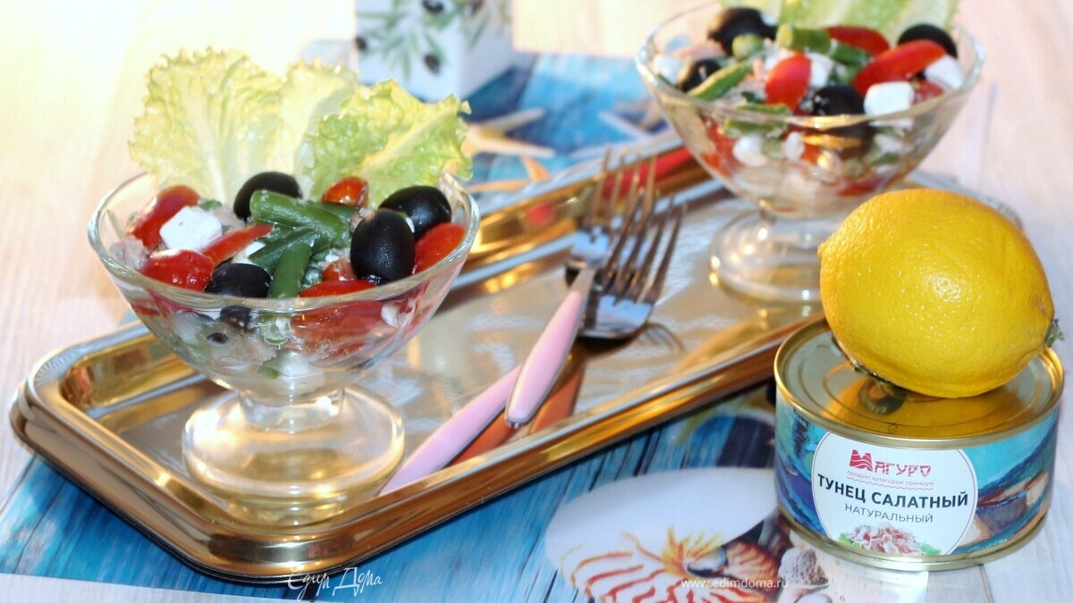 Салат с тунцом, сыром фета и стручковой фасолью — идеальное блюдо для питательного завтрака, полноценного обеда или легкого ужина.