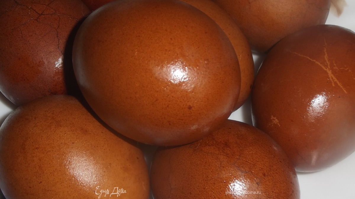 Стакан сухой заварки насыпать на дно посуды. Уложить яйца. - Шаг 2