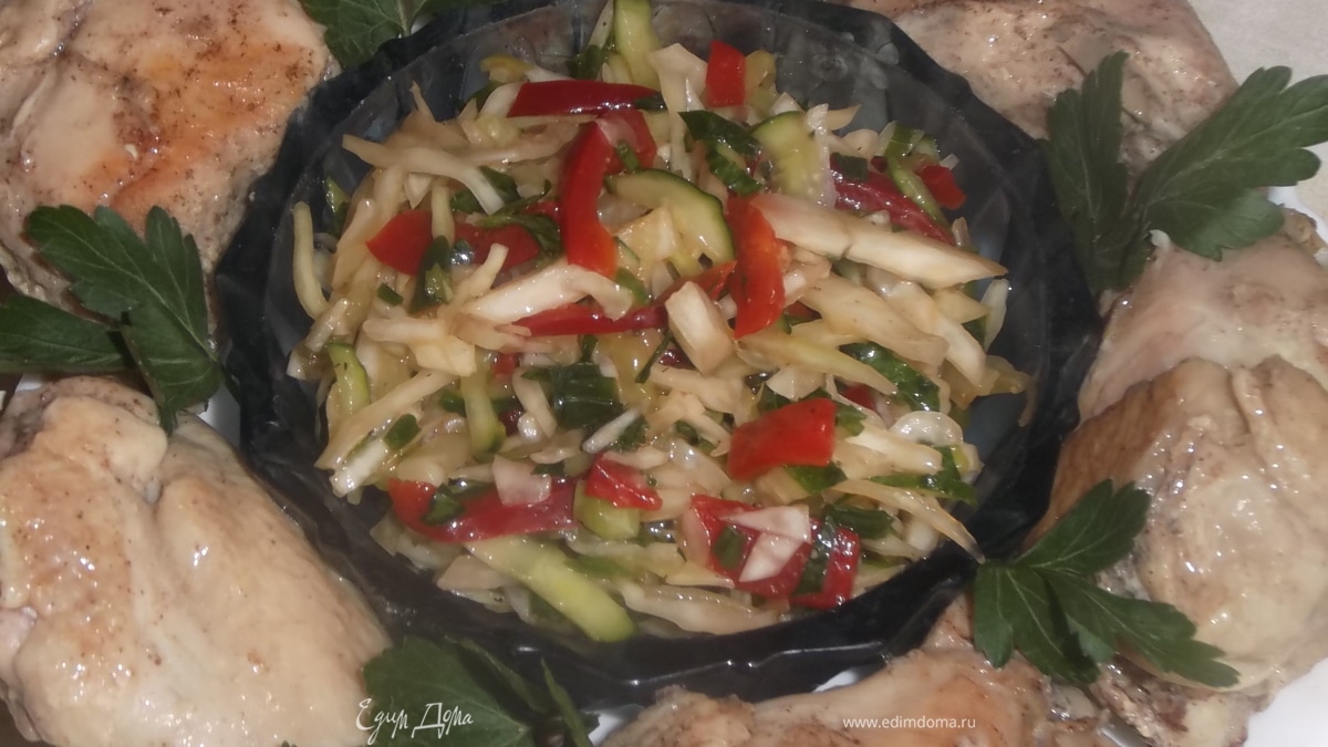 Жарить на умеренном огне 45 минут, не открывая крышки. В процессе готовки курицу не переворачивать. Приятного аппетита!