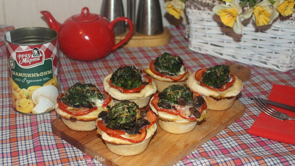 Открываем консервированные шампиньоны ТМ «Фрау Марта», выкладываем по кругу на помидоры. - Шаг 6