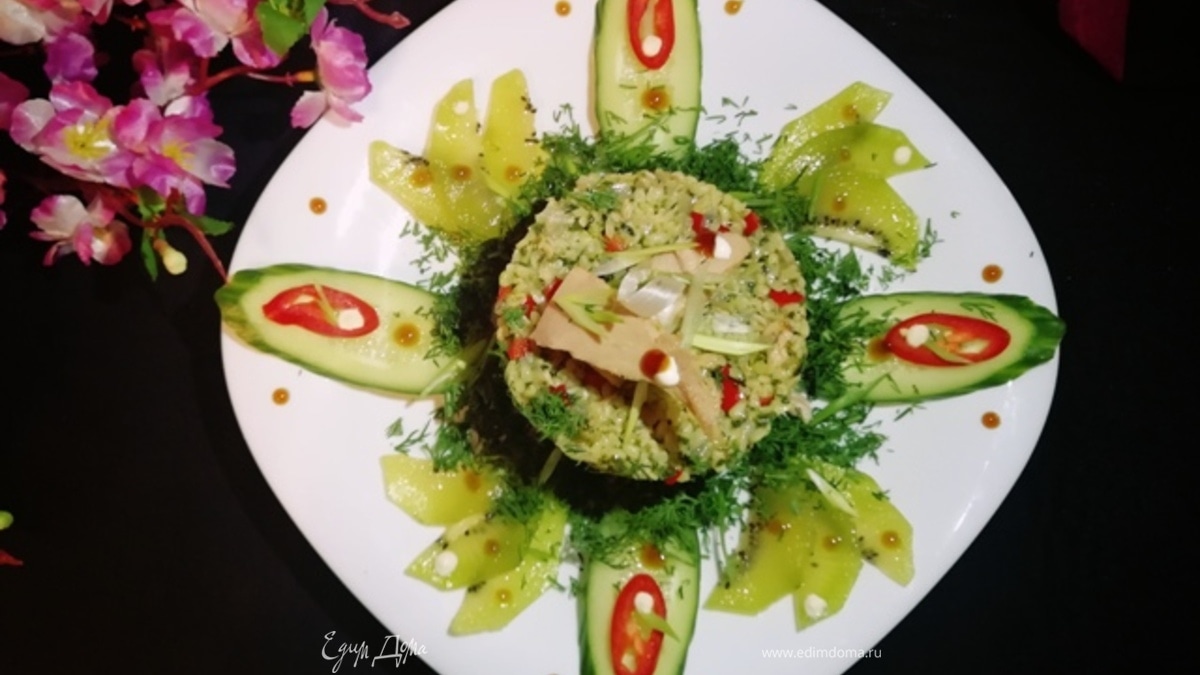 Для подачи я взяла киви, огурец, перец чили, укроп. - Шаг 12